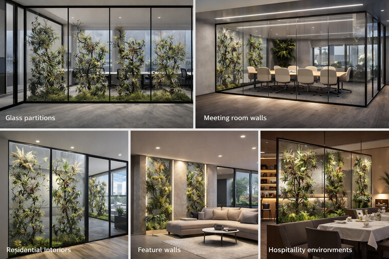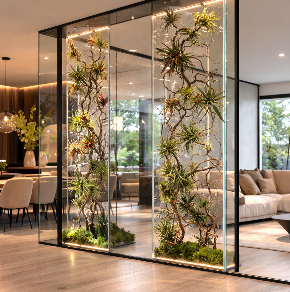 Each FloraPanel contains carefully preserved natural plant structures positioned within a transparent panel system.
